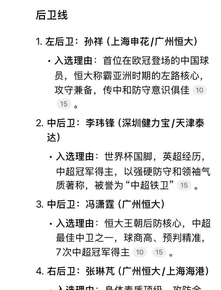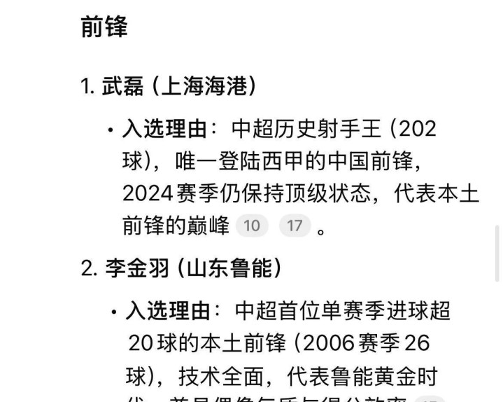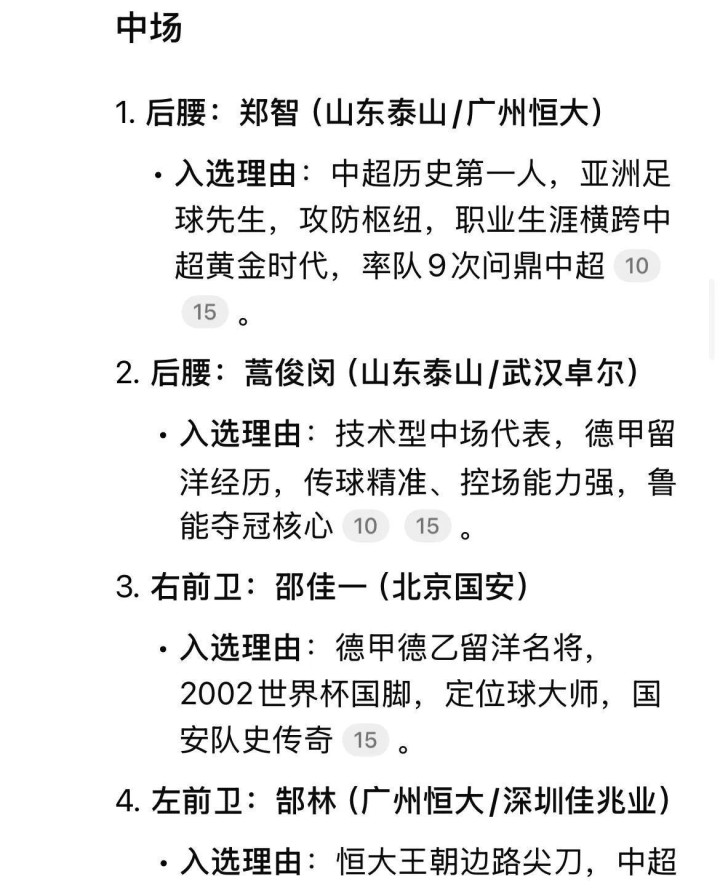 中国足球经历了翻天覆地的变化。中超联赛的诞生和发展,为无数本土球员提供了展现才华的舞台。 Deepseek评选的2004-2024年中超最佳本土11人阵容,正是对这二十年辉煌历程的最佳总结。基于4-4-2阵型,我们将回顾这些球员的巅峰时刻,以及他们对中国足球的贡献,探寻这支梦之队背后的故事。 新的篇章即将开启,但这些球员的名字,将永远铭刻在中国足球的历史长河中。